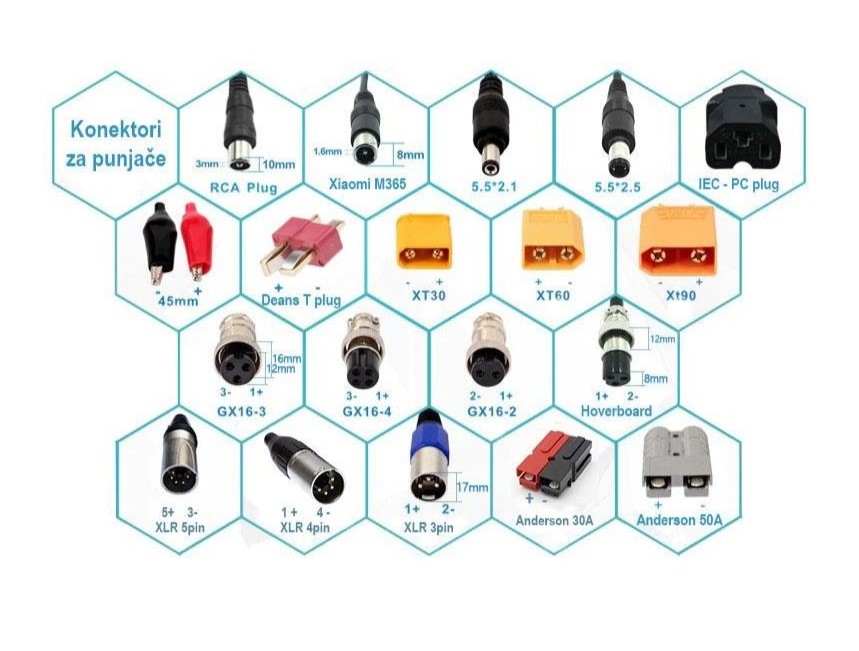 Punjač široke namene, sposoban da puni veliki broj električnih vozila koja koriste Li-Ion baterije kao što su: balans skuter, električni trotinet, električni bicikl, trotiko skuter, električna kolica, smart balance wheel, hoverboard, dečije igračke itd.