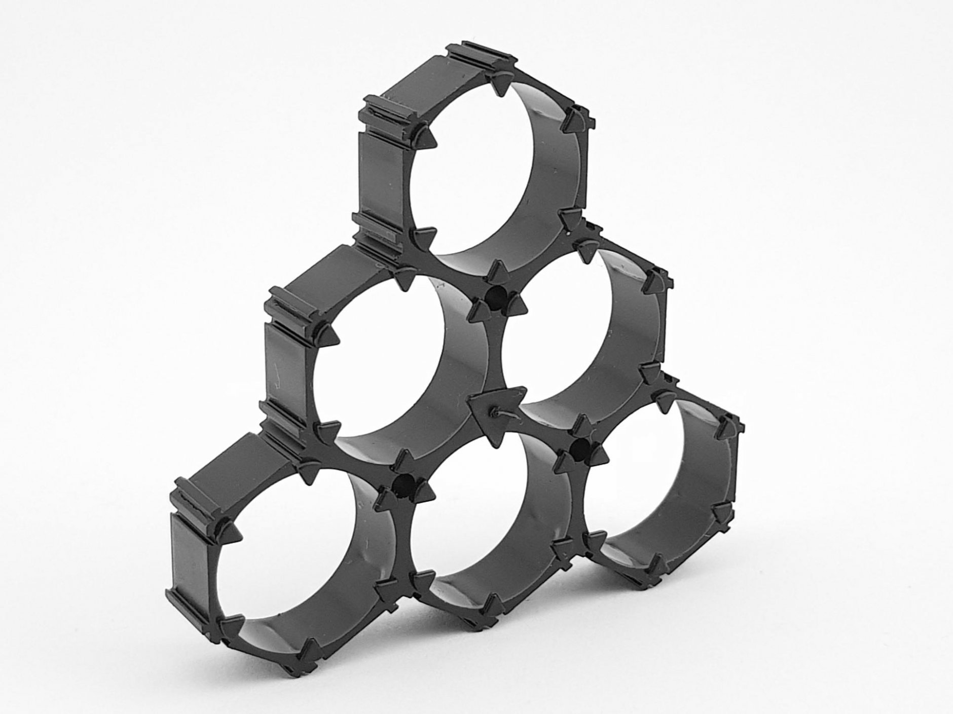 Vrhunski plastični nosači/držači napravljeni su od kvalitetne ABS plastike. Omogućavaju povezivanje šest komada 18650 litijum baterija u velike baterijske pakete. Nosač ima ležišta sa svih strana, napravljena tako da omogućavaju povezivanje više nosača kako bi prilagodili svoje zahteve većim i specifičnim paketima baterija.