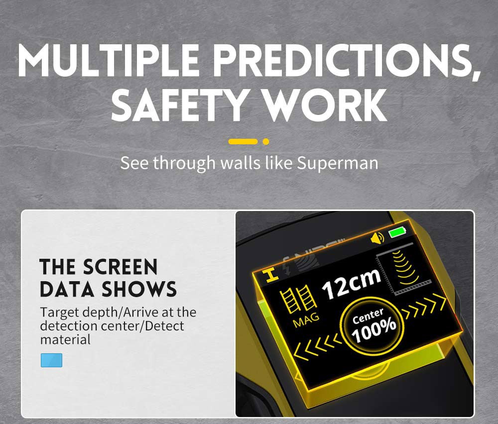 Digitalni LCD ekran i zvučni alarm: Ovaj detektor za studove dolazi sa LCD ekranom i zvučnim alarmom, koji može precizno locirati objekte. USB Type-C način punjenja olakšava upotrebu bez potrebe za zamenom baterija.