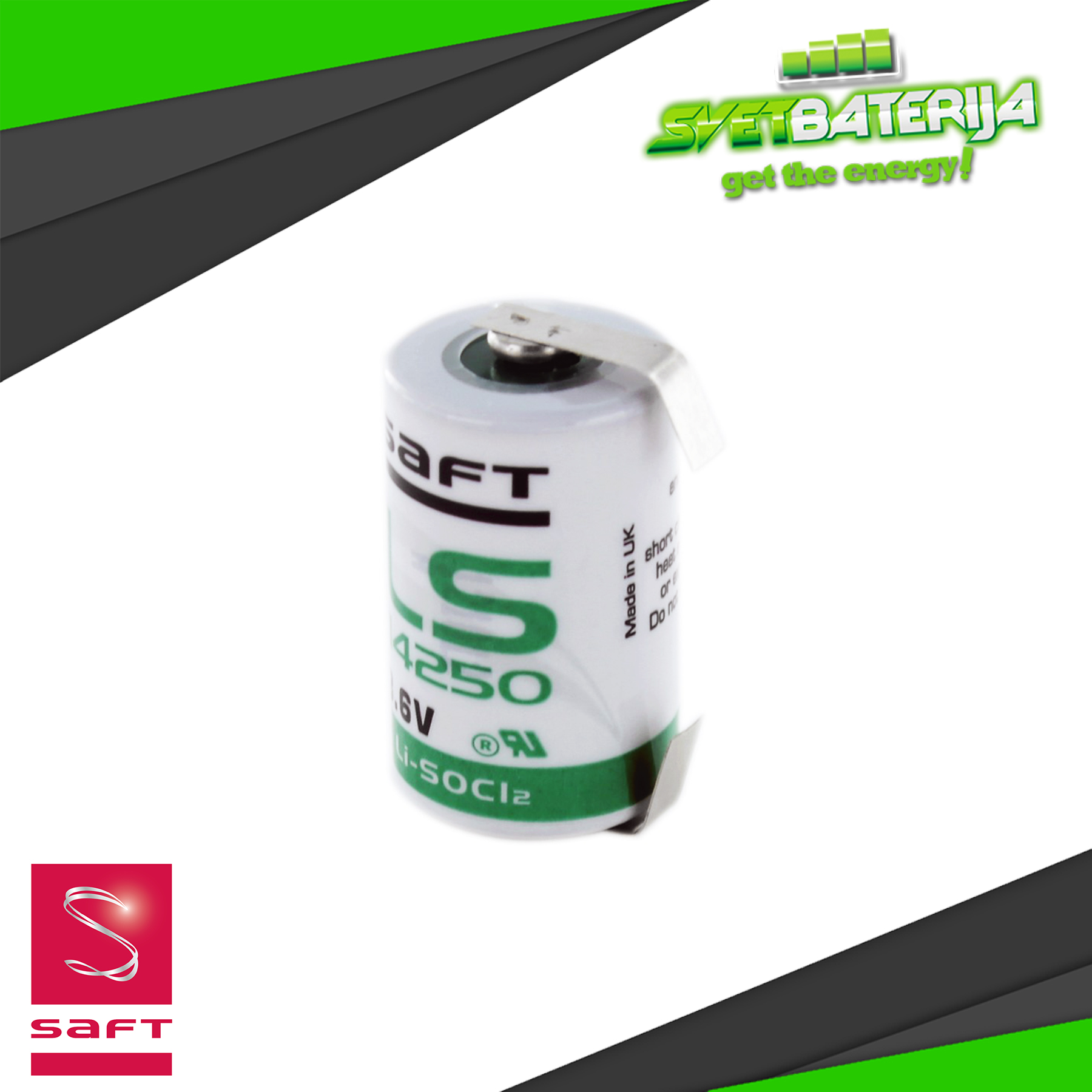 Koristi se kao napajanje memorije Back-up sistema, PLC, mernih uređaja, sigurnosnih sistema, senzora i druge profesionalne elektronike i kao takva ćelija u svetu ne postoji pouzdanija od Saft LS14250 Litijumske ćelije. Ova baterija ima neverovatno stabilnu i dugotrajnu Litijum hemiju, kao i jedinstven napon od 3.6V za pouzdan izvor energije što je čini savršenom za specifinu osetljivu elektroniku. Ova Saft LS14250 baterija ima kapacitet od 1100mAh što srazmerno povećava njen radni vek posebno kod uređaja koji rade na niskoj impulsnoj struji. Veličina ćelije je 1/2AA ili 14250 tj. 14mm prečnik i 250mm dužina i napravljena je da odgovara u unutrašnjosti kompaktne elektronike kojoj treba visok napon za brojila, čuvanje memorije i raznih mernih satova.